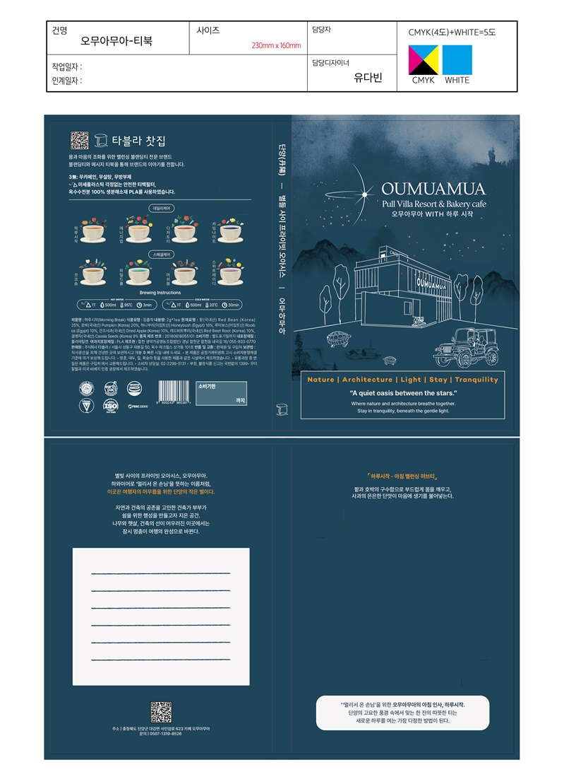 이 프로젝트는 단양의 로컬 카페들이 자신만의 철학과 공간의 향을 담은 블렌딩 허브티와 그 이야기를 기록한 ‘티북(Tea Book)’을 함께 제작함으로써 지역 브랜드의 스토리와 가치를 한층 입체적으로 전달하고자 기획되었다.