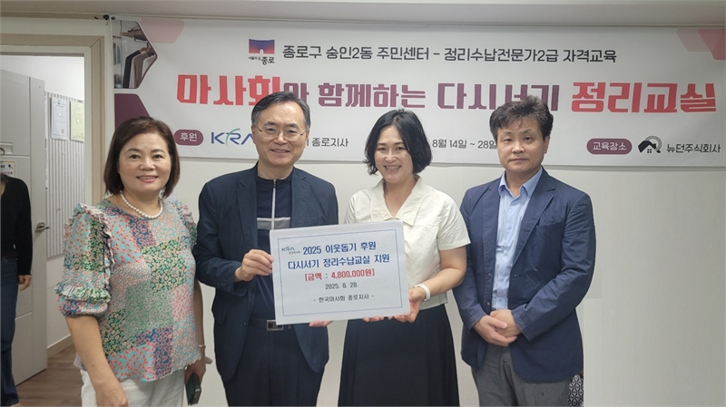 종로구 숭인2동 주민센터(동장 박선민)는 한국마사회 종로지사의 후원으로 종로구 주민을 휘한 ‘다시서기 정리교실’을 열었다. 이번 교육은 종로구 숭인동에 위치한 뉴던(주) 부설 코스모평생교육원 (대표 박재현)에서 열렸으며, 8월 14일부터 28일까지 매주 목요일 오전 9시~오후 1시까지 총 3회에 걸쳐 12시간 과정으로 이
