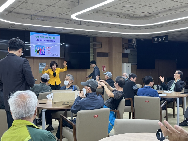 첫 번째 순서로 진행된 ‘건강에너지 만들기’에서는 음악에 맞춰 몸을 움직이는 율동 수업이 열렸다. 어르신들은 강사의 안내에 따라 손과 발을 움직이며 흥겨운 분위기 속에서 건강체조를 배웠다.