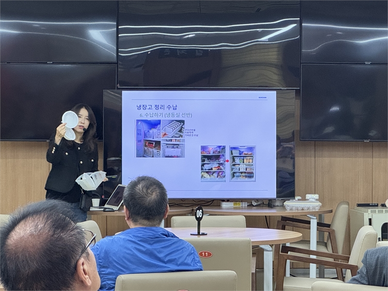 이번 프로그램은 생활공간을 효율적으로 활용하고 쾌적한 주거환경을 만드는 방법을 배우는 것을 목표로, 1교시에는 ‘냉장고 정리 수납법’, 2교시에는 ‘옷장 정리 및 의류 개는 법 실습’으로 구성됐다.