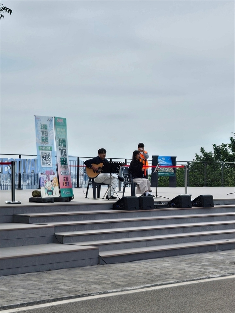 한쪽 무대에서는 버스킹 공연도 진행되었는데, 개막식인 토요일을 제외하고 14시부터 17시 30분까지 총 4팀씩 매일 공연을 하였다. 남녀노소할 것 없이 시원한 날씨와 함께 버스킹을 즐기고 있었다.