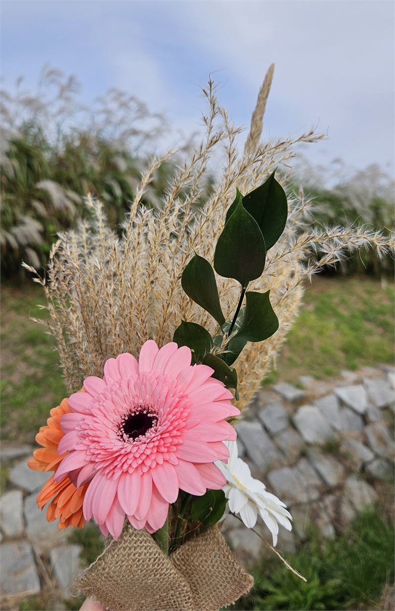 '하늘 억새 꽃다발 만들기' 프로그램에서 직접 만든 꽃다발(사진제공=조은서 기자)